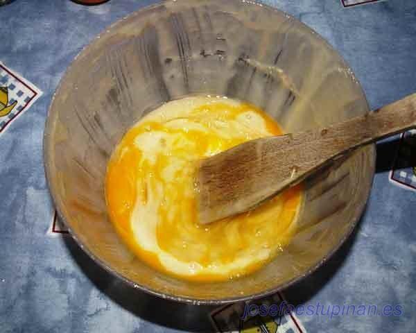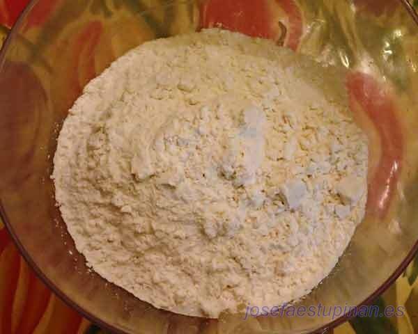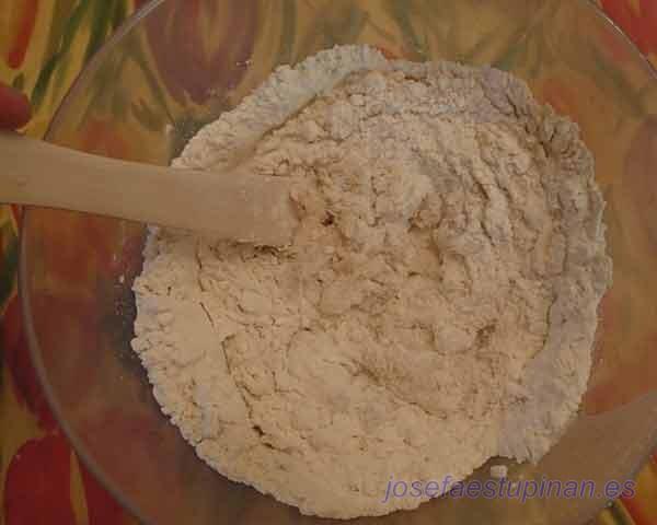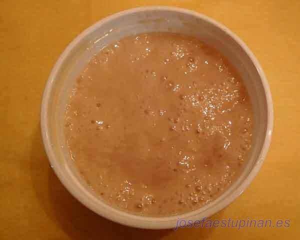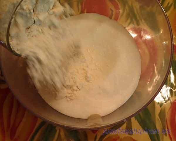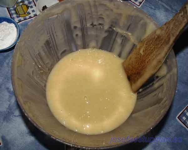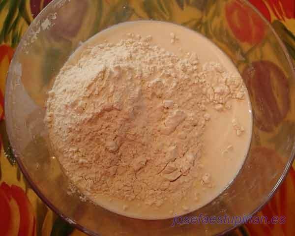 - Añade y mezcla, poco a poco, el sobre de levadura y 2 vasos de harina tamizada.