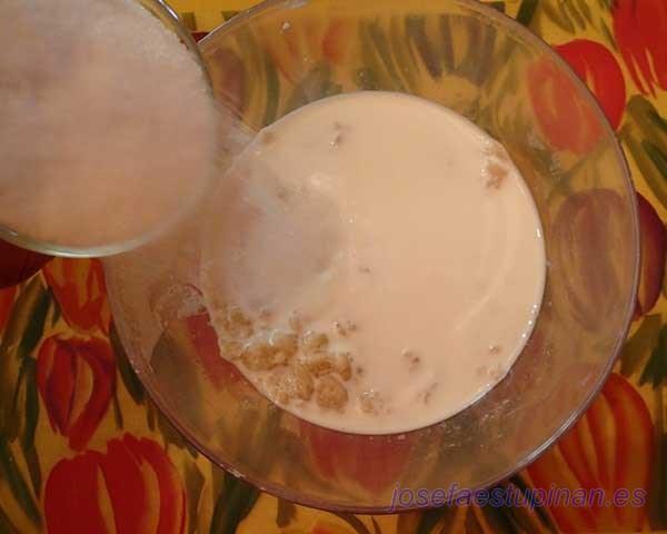 - Cuando la mezcla este uniforme, añade un vaso de leche y volver a mezclar bien.