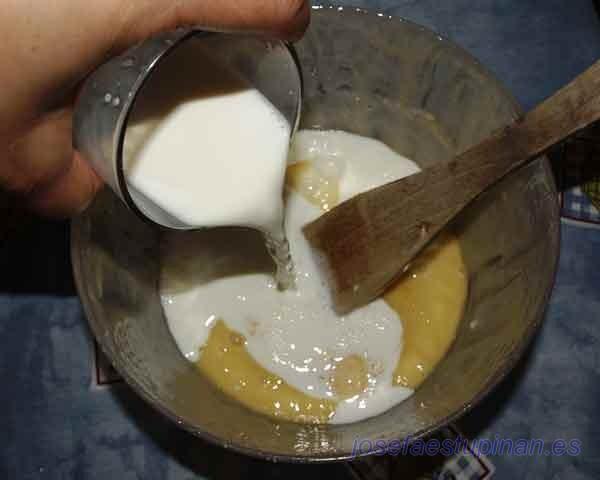 - Lunes: añade un vaso de leche entera, otro vaso de azúcar y un vaso de harina tamizada. No revolver.