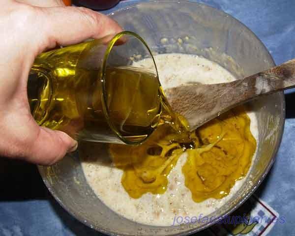 - Añade 3/4 de un vaso de aceite y mezcla con cuidado.