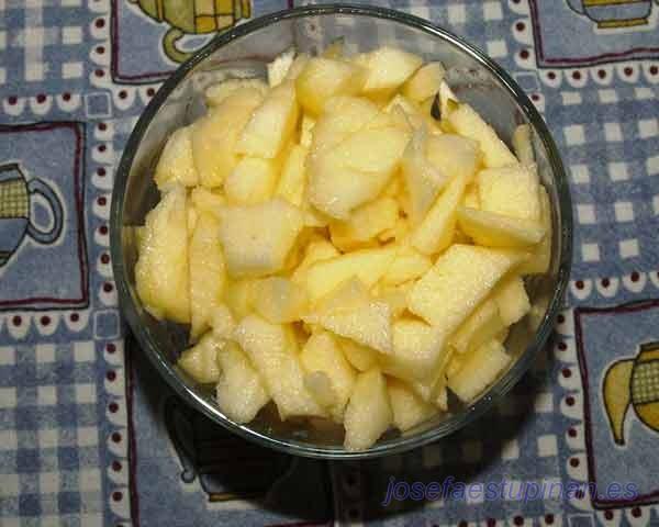 - Lava, pela y trocea la manzana. Añade a la mezcla y volver a mezclar.