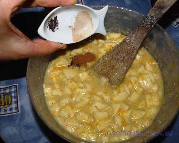 - Añade la pizca de sal, la canela y la vainilla, y vuelve a mezclar todo.
